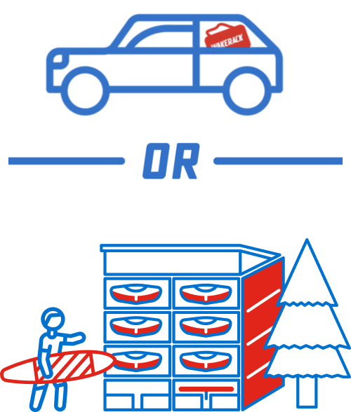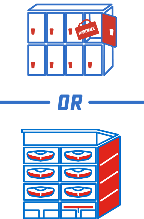 Use our booking map to choose a location, and select between Inflatable Grab-Bags at a WakeRack Locker near your favorite lake, or skip the stop and choose Rigid Gear at a Waterside WakeRack Locker.